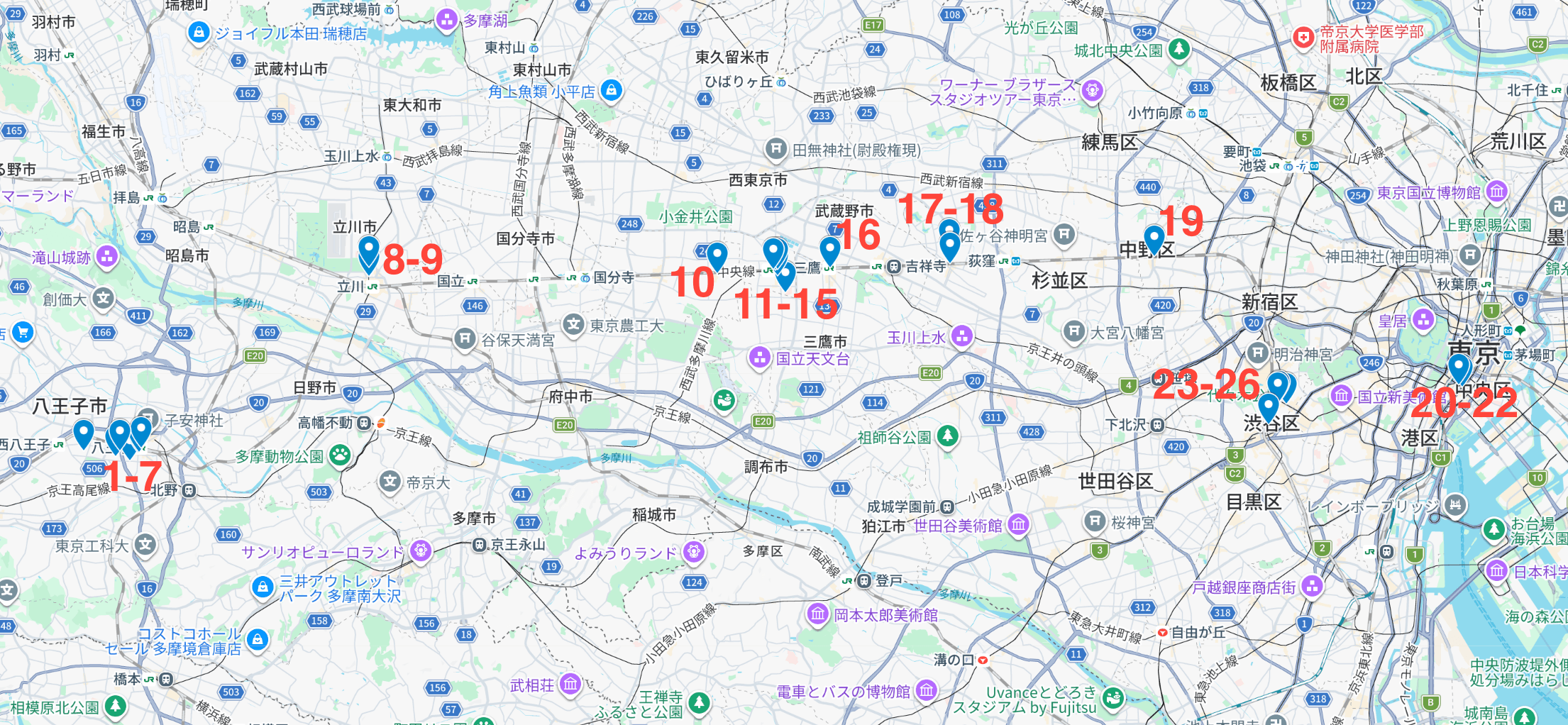 基本上大多數場景都散落在中央線周邊